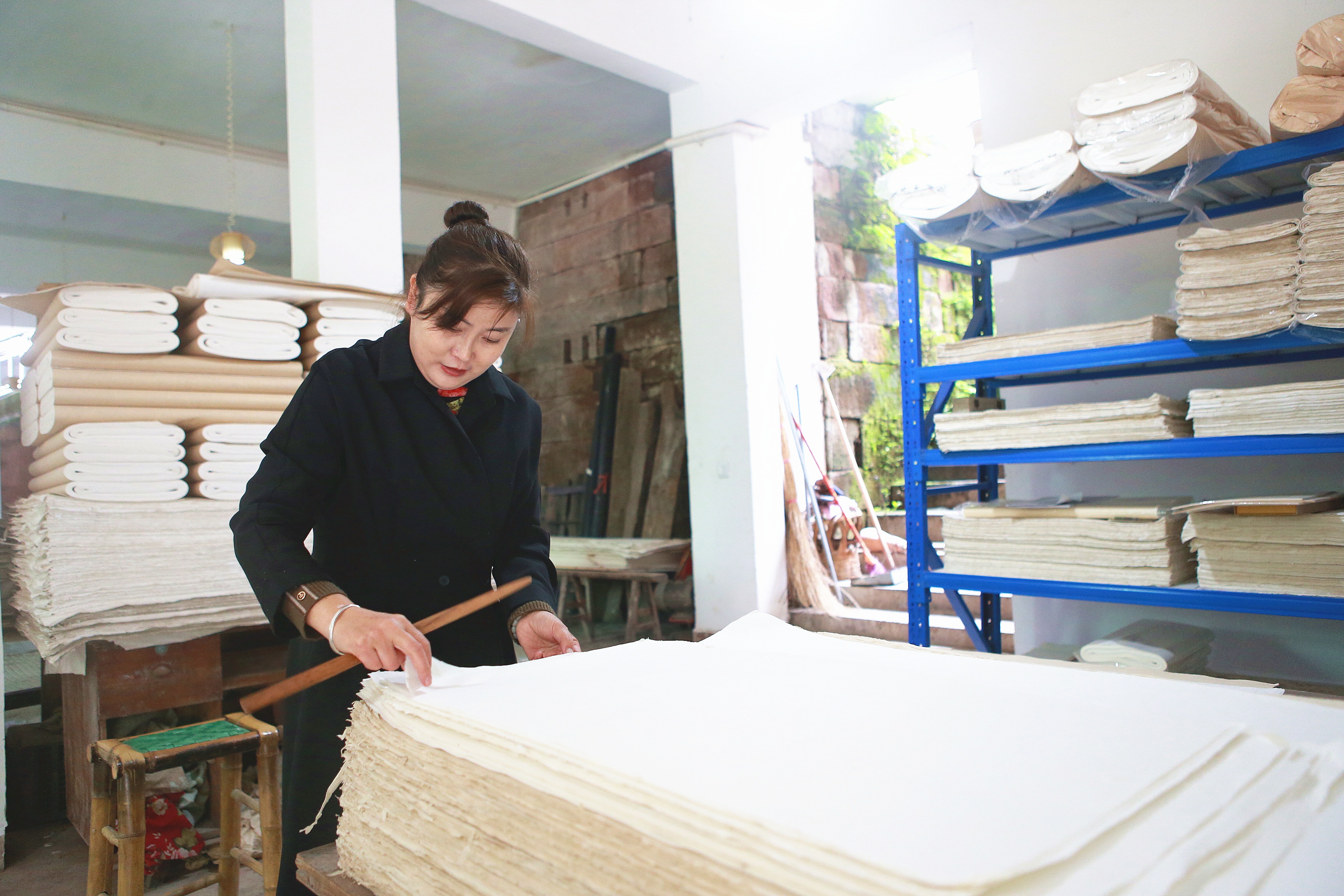 尤其是陈秀君所在的马村镇,手工造纸技艺传承千年,于2008年获评“中国民间文化艺术之乡”称号。这里的手工纸历史底蕴深厚,著名画家张大千在抗战时期就曾寓居马村镇石堰村,与当地纸匠共同钻研改良手工造纸技艺,以制出更适应其创作的高品质画纸。